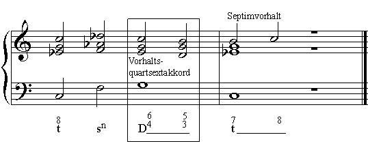 Vor allem in Schlusswendungen treten Quart- und Sextvorhalt häufig gleichzeitig auf, der entstehende Akkord heißt "Vorhaltquartsextakkord":